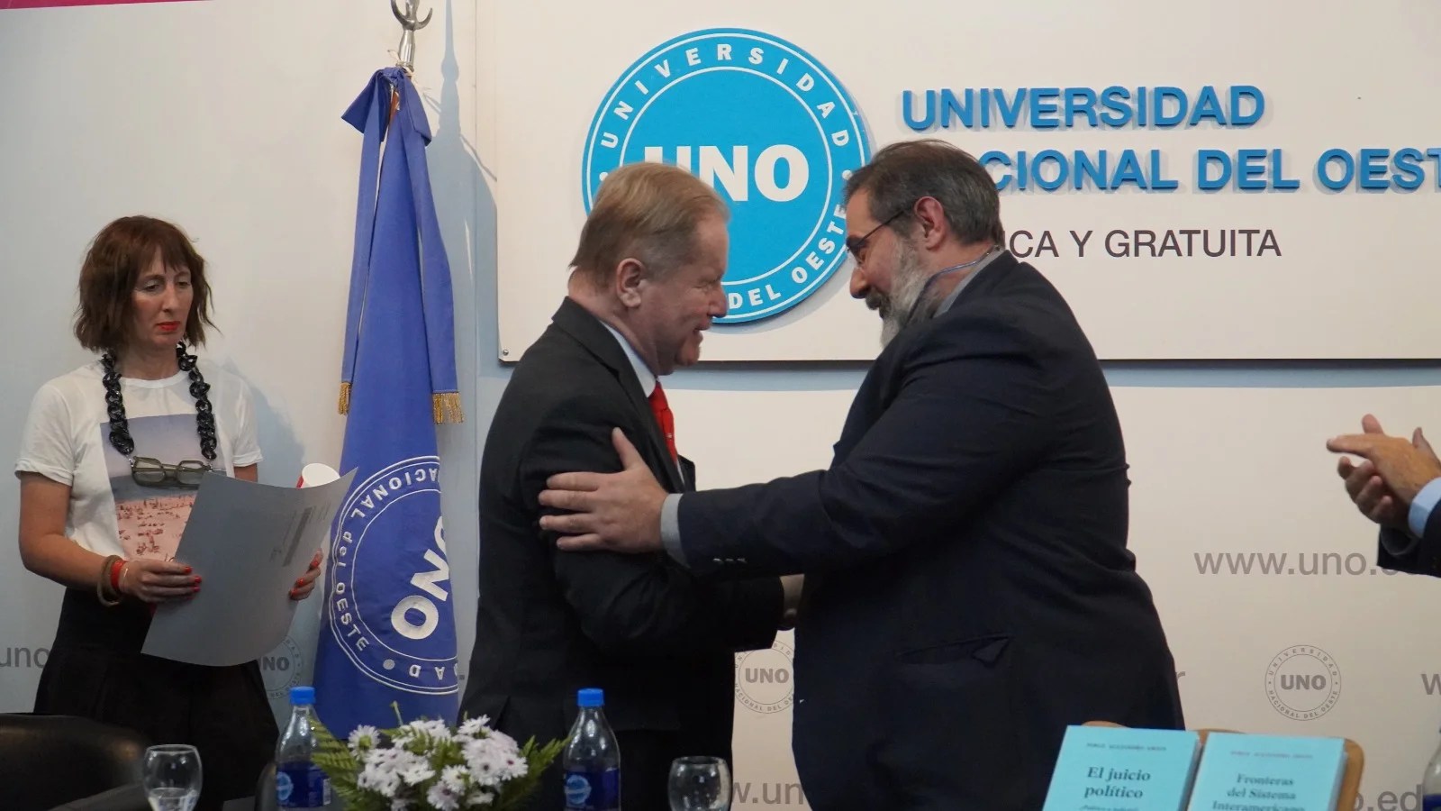 El hito se produjo durante una charla especial dirigida a estudiantes en la sede del rectorado de la Universidad del Oeste, ubicada en San Antonio de Padua. Los invitados de honor fueron el Dr. Luca Mezetti, Director de la Escuela Superior de Estudios Jurídicos de la Universidad de Bologna, Italia, y el Dr. Jorge Alejandro Amaya, Presidente del Instituto para el Desarrollo Constitucional y Director para Latinoamérica del Programa de Altos Estudios Posdoctorales en Derecho. Durante la charla, se exploraron temas relacionados con el sistema de protección de los derechos humanos en los ámbitos europeo e interamericano.